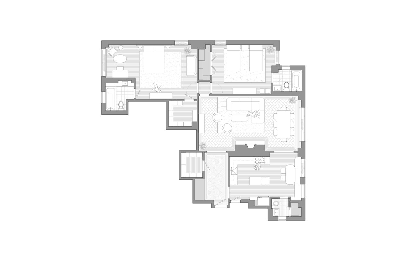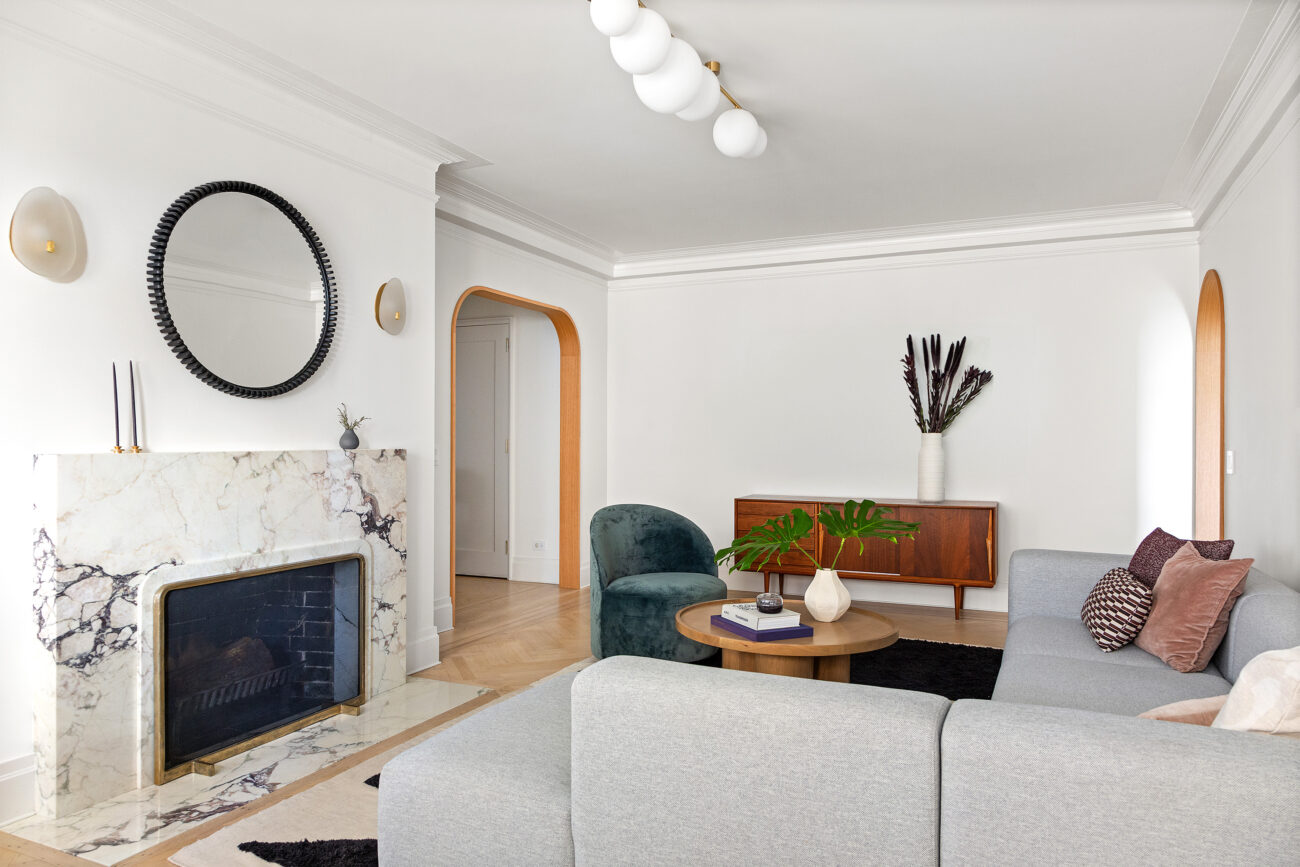 This large, 2 bedroom apartment sits on the 12th floor of one of Park Slope’s premier pre-war cooperative buildings overlooking Prospect Park. We modernized the apartment for a young family reconfiguring servant’s quarters into a large eat-in kitchen. The home has sweeping views across brownstone Brooklyn towards Manhattan.