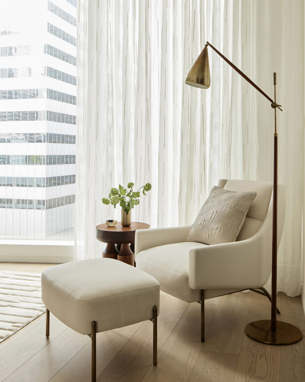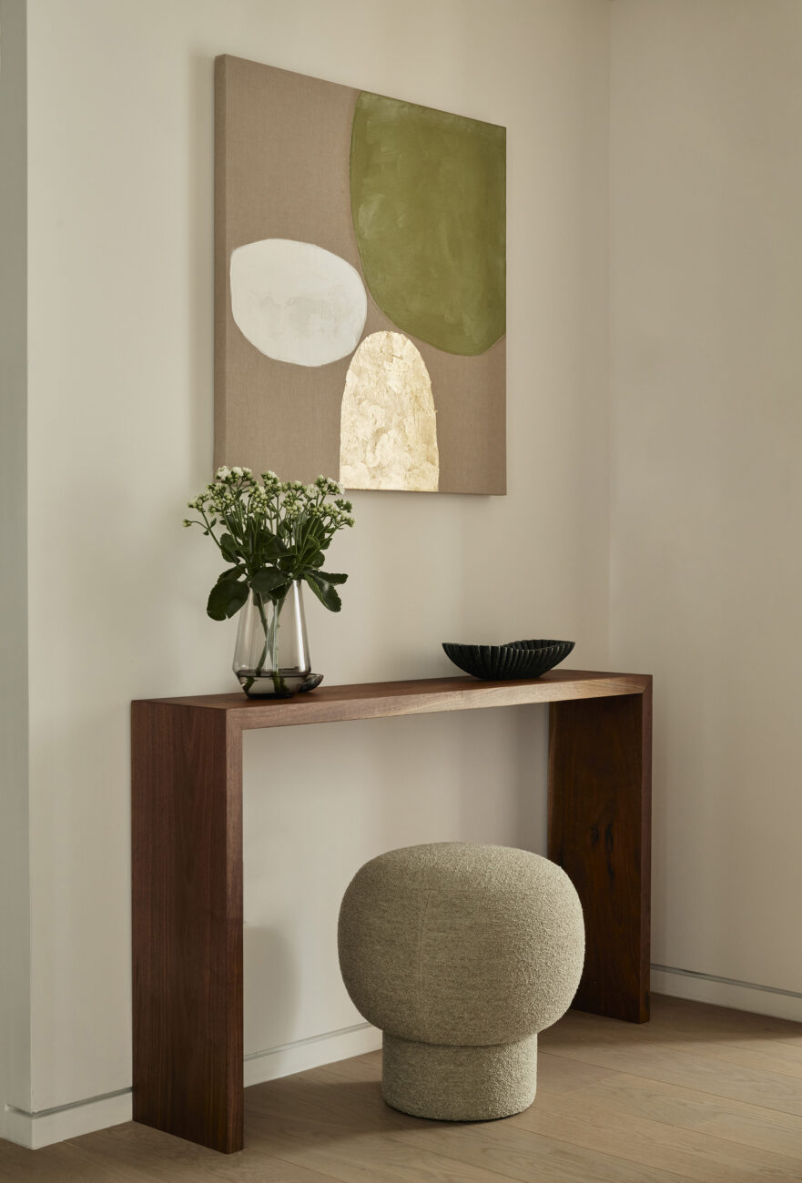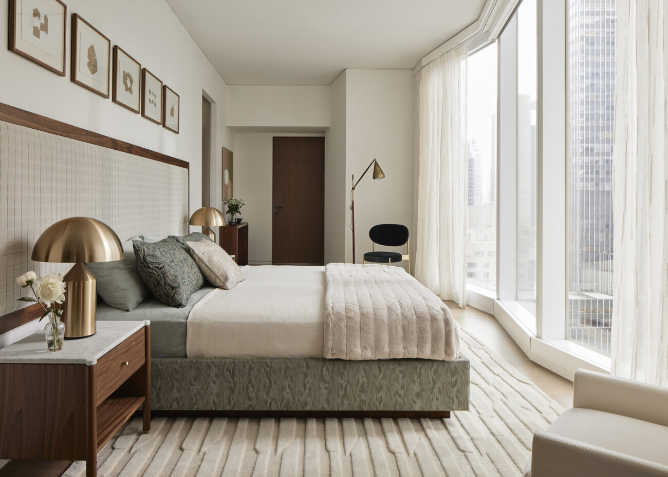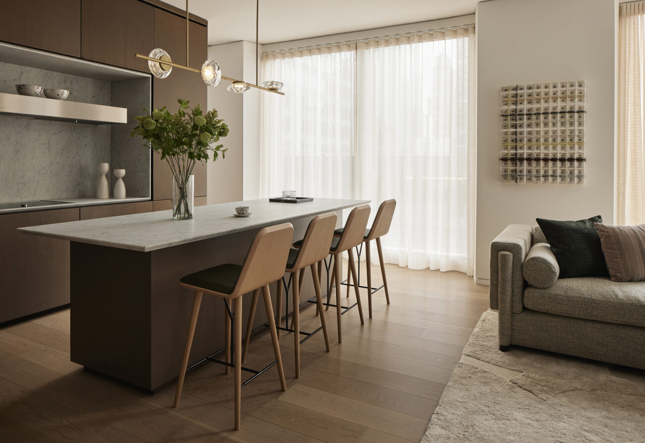 The client purchased a unit in the new construction condominium building designed by Norman Foster in midtown Manhattan for use as a pied-à-terre. Our interior design of this creates a variety of textures in a neutral tonal palette. This was the second project with this client in the building.