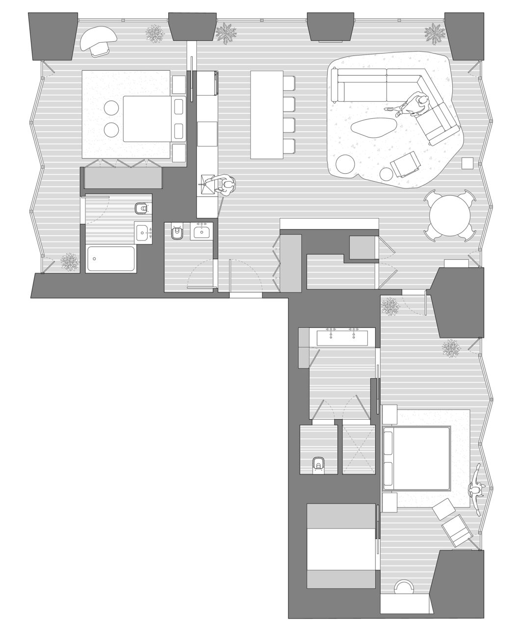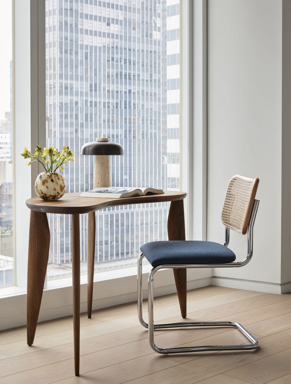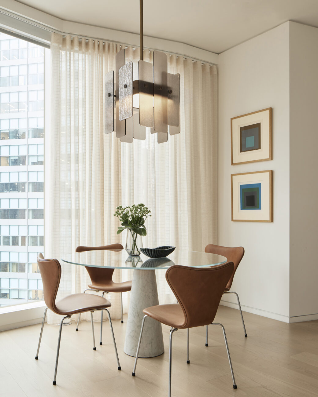 The client purchased a unit in the new construction condominium building designed by Norman Foster in midtown Manhattan for use as a pied-à-terre. Our interior design of this creates a variety of textures in a neutral tonal palette. This was the second project with this client in the building.